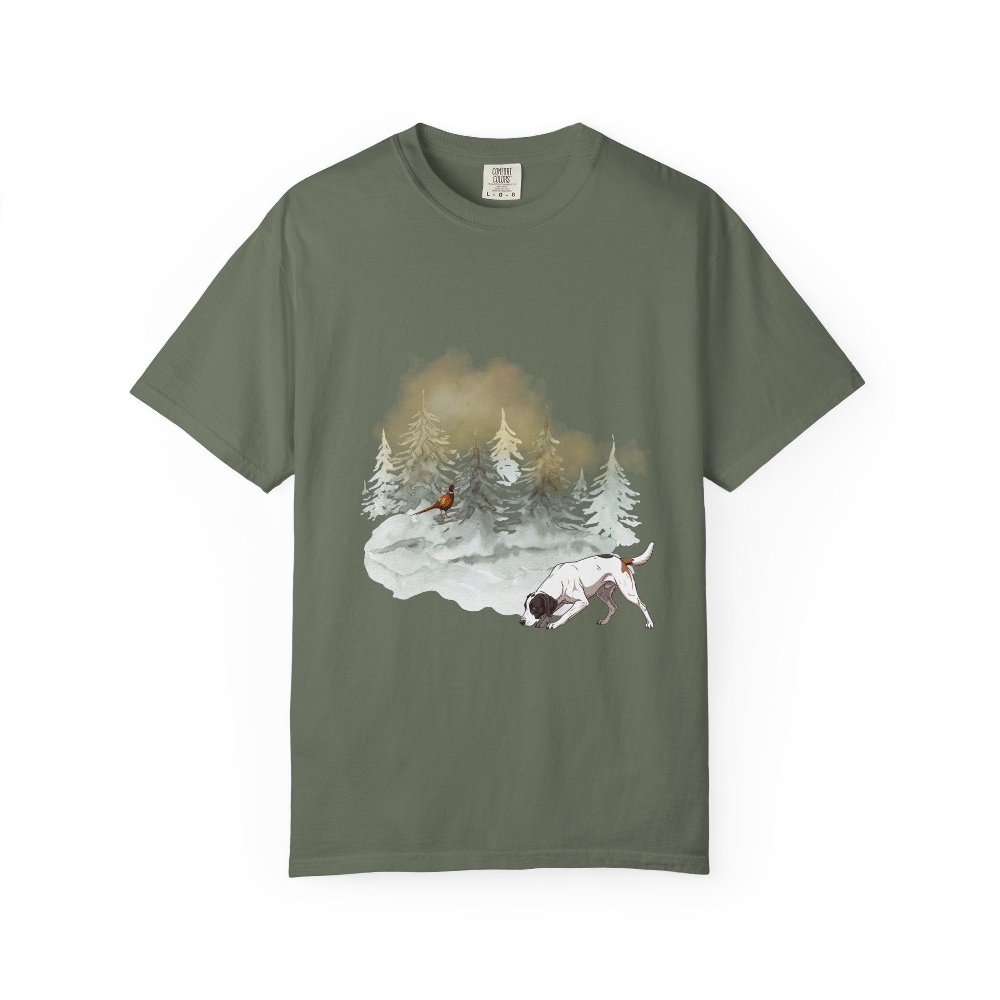 Dog & Pine Forest T-Shirt — Watercolor Hunting Pointer Tee
