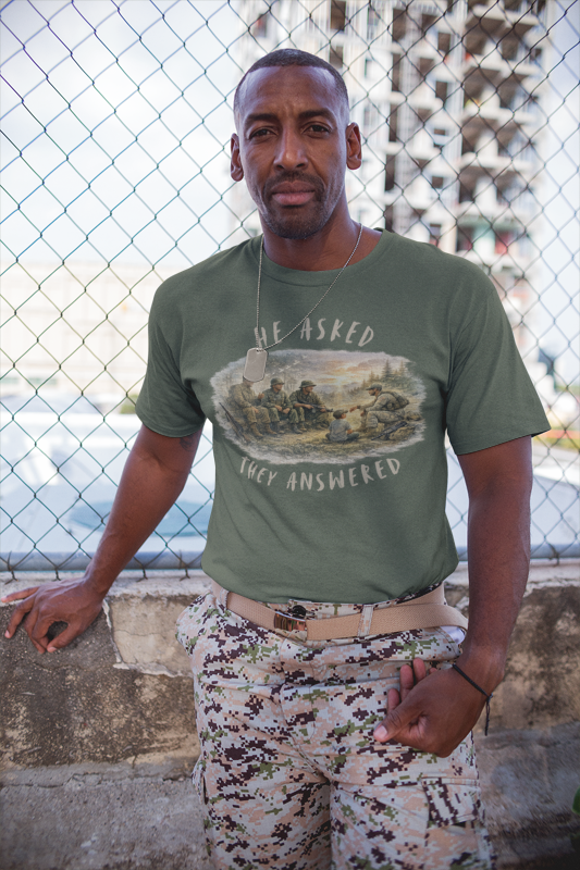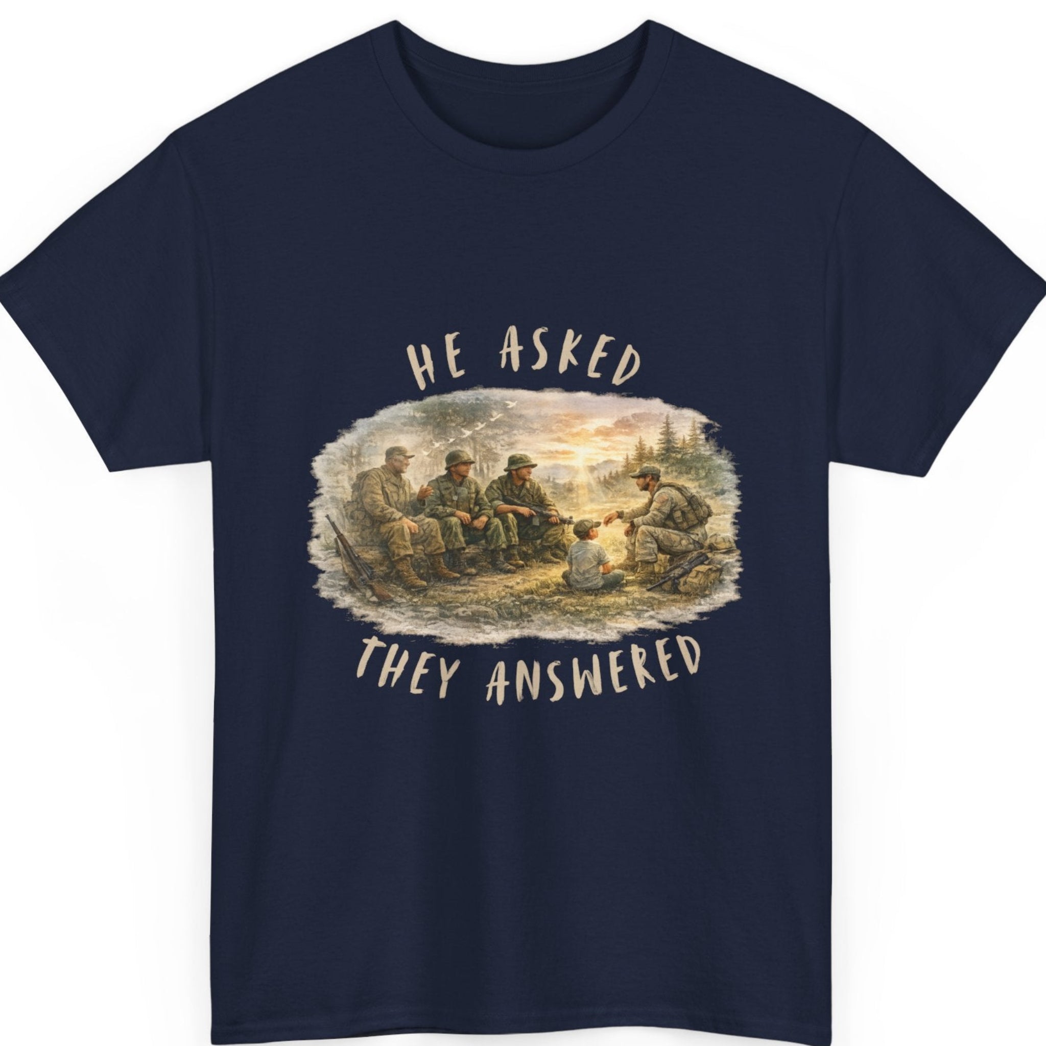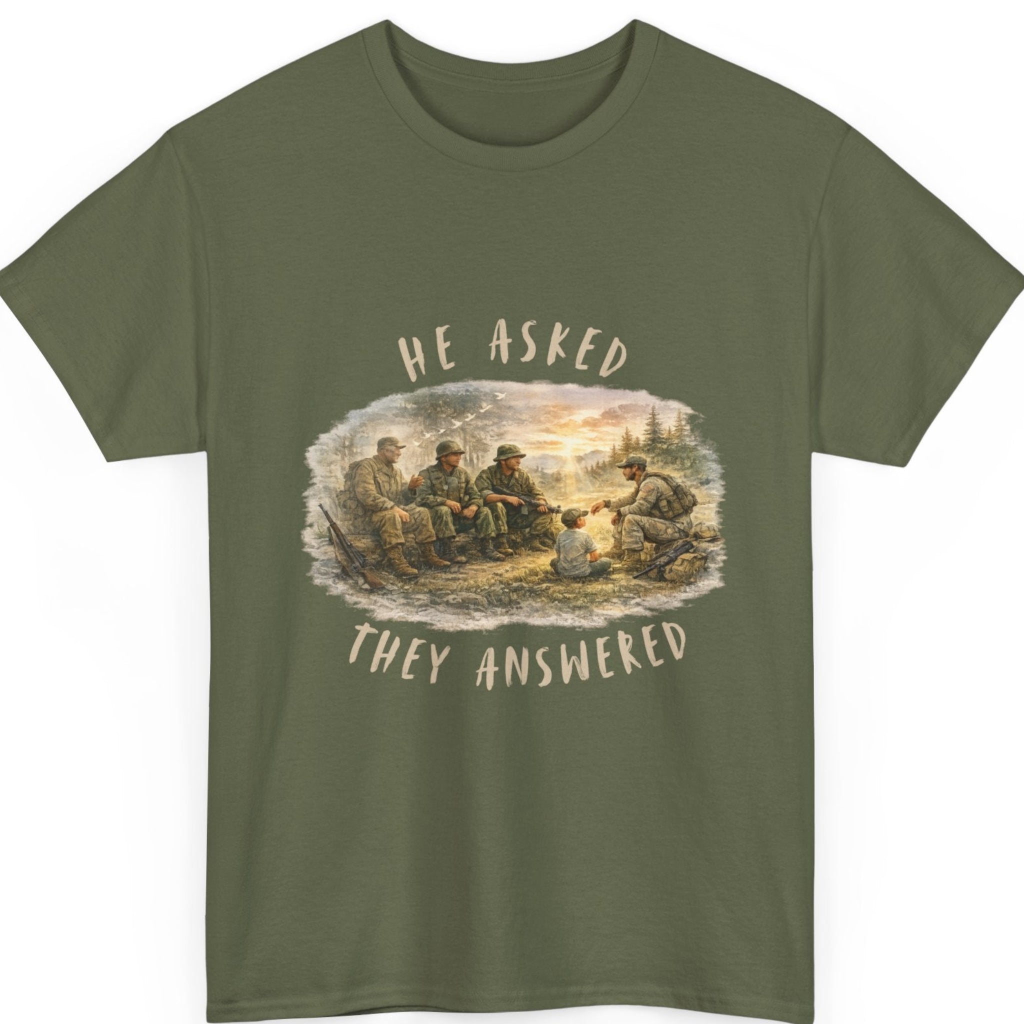 Veterans Watercolor Generations Unisex Tee 'He Asked They Answered' Memorial Military Tribute