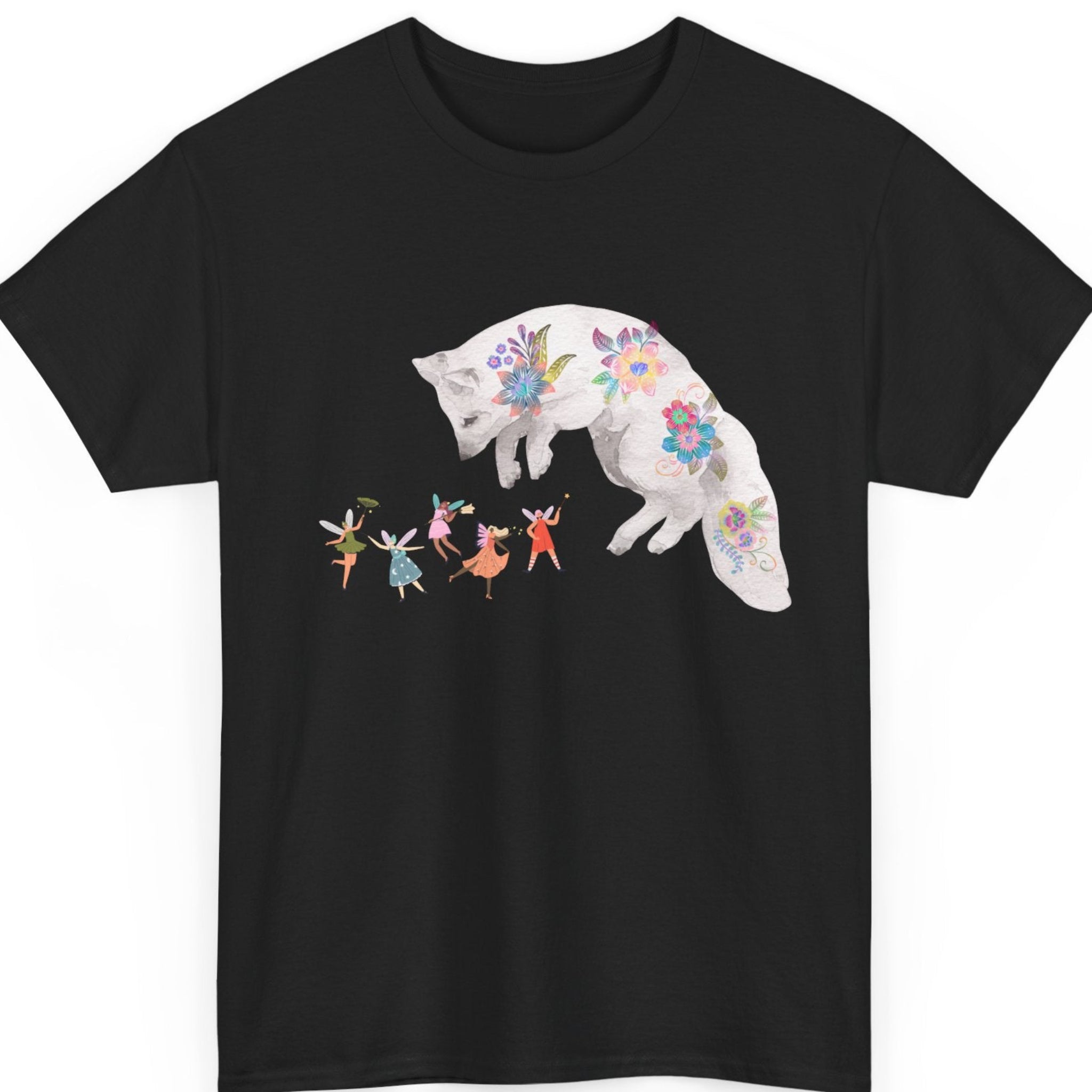 Keep your imagination going with this white fox playing with winged dancing fairies.  Colorful and whimsical Unisex Heavy Cotton Tee, perfect for anyone seeking comfort without compromising on style. The charming design showcases a whimsical scene featuring a white fox and vibrant fairies, adding a touch of magic to your everyday look. This tee is ideal for casual outings, cozy gatherings with friends, or simply lounging at home. Whether you're a cat lover or someone who enjoys a playful aesthetic, this shirt will make a delightful addition to your collection. Great for gifting during holidays, birthdays, or celebrations that embrace individuality and creativity!